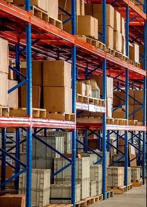 倉庫貨架立柱為藍(lán)色,主要起承重和固定作用,橫梁為橘黃色,主要起承載托盤的作用。藍(lán)色是非常沉穩(wěn)的顏色,具有緩解焦躁的作用,有效降低作業(yè)人員在重復(fù)的操作中可能形成的疲勞感;而橘黃色是非常醒目且活躍的顏色,有著讓人積極快樂、增強(qiáng)活力的功能,且藍(lán)色與橘黃色是對比色,在叉車工作時能很好地辨識托盤位置,準(zhǔn)確碼放貨品,保障貨品的存取安全。