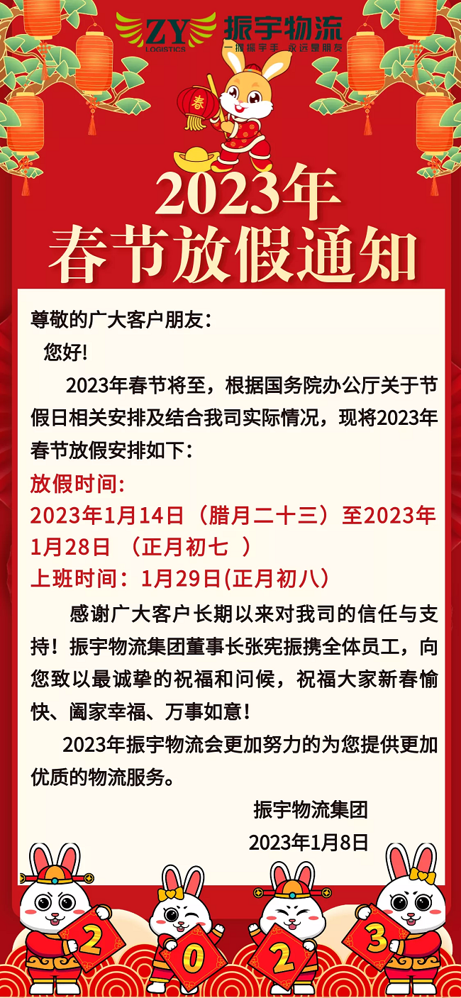 振宇物流集團(tuán)丨2023年春節(jié)放假通知