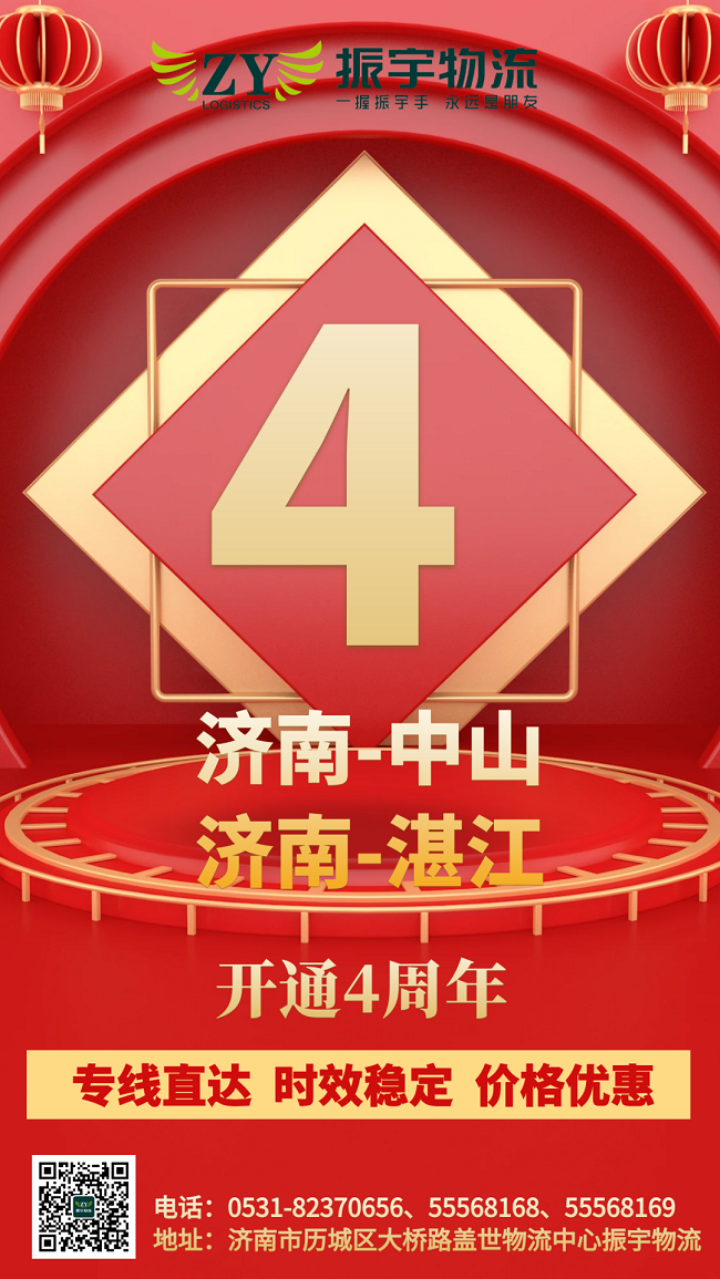 振宇物流集團(tuán)丨濟(jì)南-中山、湛江直達(dá)專線開(kāi)通四周年,線路發(fā)貨優(yōu)惠中……