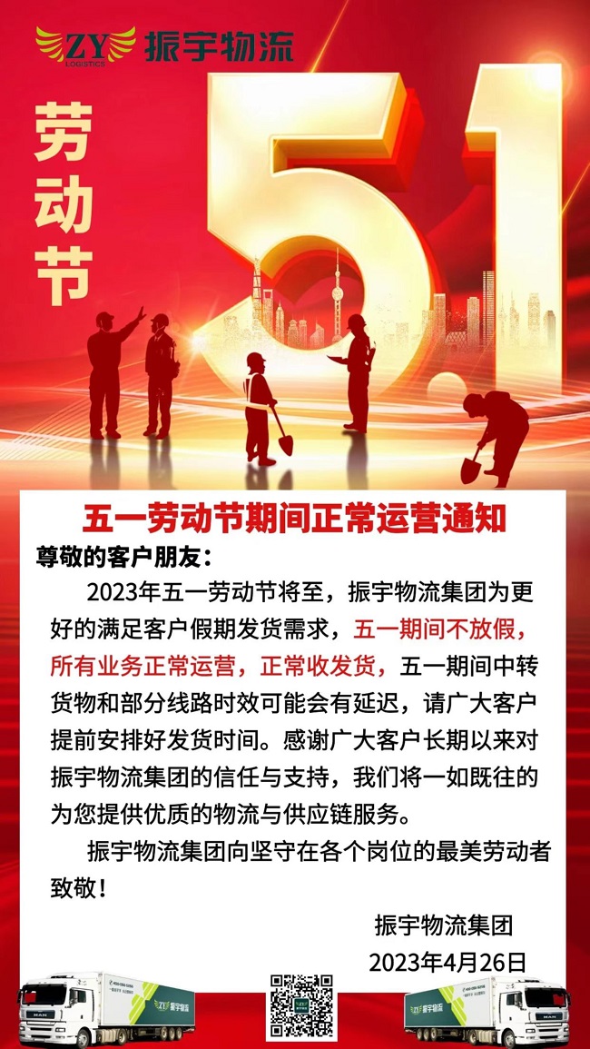 振宇物流集團(tuán)丨五一期間正常運營通知