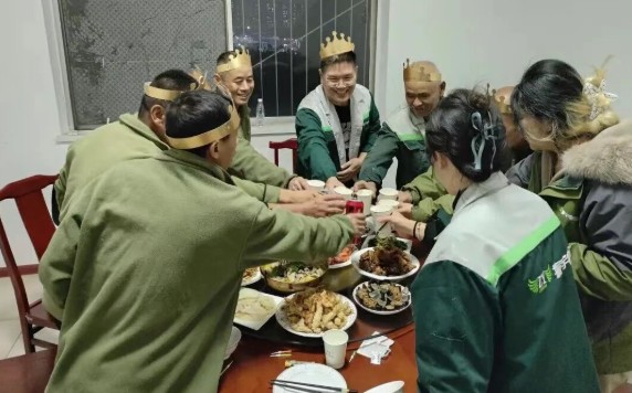 壽星們圍坐,燭光逐一亮起時(shí),有人閉目凝神,有人望向身側(cè)的同事,輕聲許下心愿。從許愿時(shí)的真誠,到吹蠟燭時(shí)的歡呼,再到飯桌上的暢聊,這場生日會傳遞的不僅是溫暖,更是振宇物流“以人為本”的核心價(jià)值觀。它讓員工感受到企業(yè)不只是工作的平臺,更是并肩前行的“家人”,成長不只是個人的奮斗,更有團(tuán)隊(duì)的托舉。