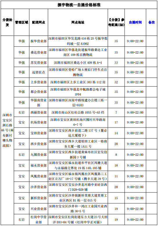 5.返貨--振宇基地單價:按照以上線路單價標(biāo)準(zhǔn)收取。