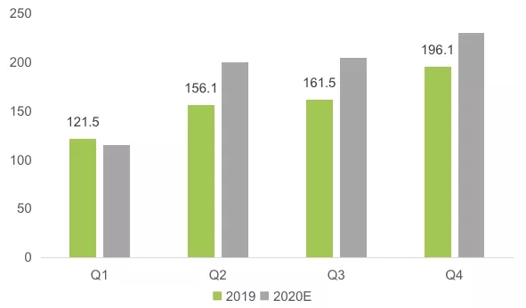 受新型冠狀病毒疫情影響,多地出臺了交通管制和人員限行的措施,短期對快遞業(yè)務發(fā)展有較大影響,主要體現(xiàn)在一季度數(shù)據(jù)。假定疫情在2月底得到有效控制的情況下,預計一季度快遞業(yè)務量120億件左右,總體與上年基本持平。經(jīng)歷3月恢復調(diào)整后,市場需求將加速釋放,二季度快遞業(yè)迎來速度提升期,增速將明顯加快,預計該季度業(yè)務量規(guī)模為200億件左右,增速將重回30%以上。下半年將恢復常態(tài)運行,預計三季度和四季度快遞業(yè)務量規(guī)模分別為200億件和230億件左右,全年快遞業(yè)務量規(guī)模將超過750億件??爝f價格觸底反彈,預計全年業(yè)務收入增速將首次超過業(yè)務量增速。